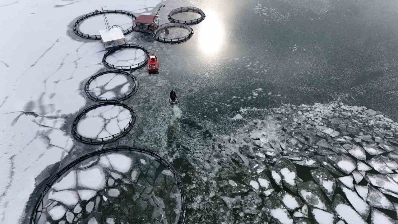 Sibirya soğuklarının etkili olduğu Erzincan’da göllerin yüzeyi buzla kaplandı.