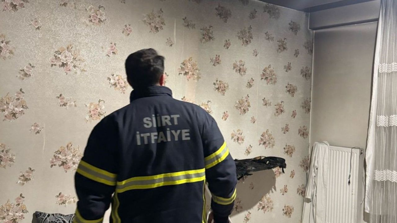 Siirt’te bir evde açık unutulan ütü yangın çıkmasına neden oldu.