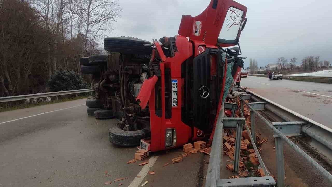 Sinop’un Gerze ilçesinde kontrolden çıkıp devrilen tuğla yüklü kamyonun sürücüsü yaralandı.