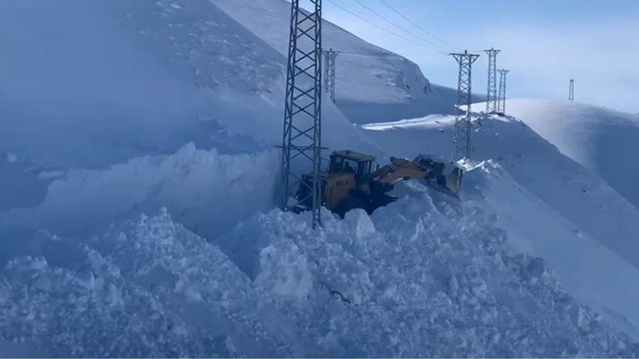 Şırnak’ın Beytüşşebap ilçesinde karla mücadele ekipleri, kar kalınlığının 3 metreyi bulduğu bölgelerde yol açma çalışmalarını sürdürüyor.