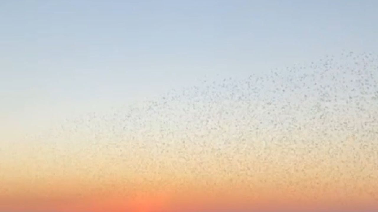 Şırnak’ın Cizre ilçesinde gün batımında binlerce kuşun kanat çırpması görsel şölen oluşturdu.