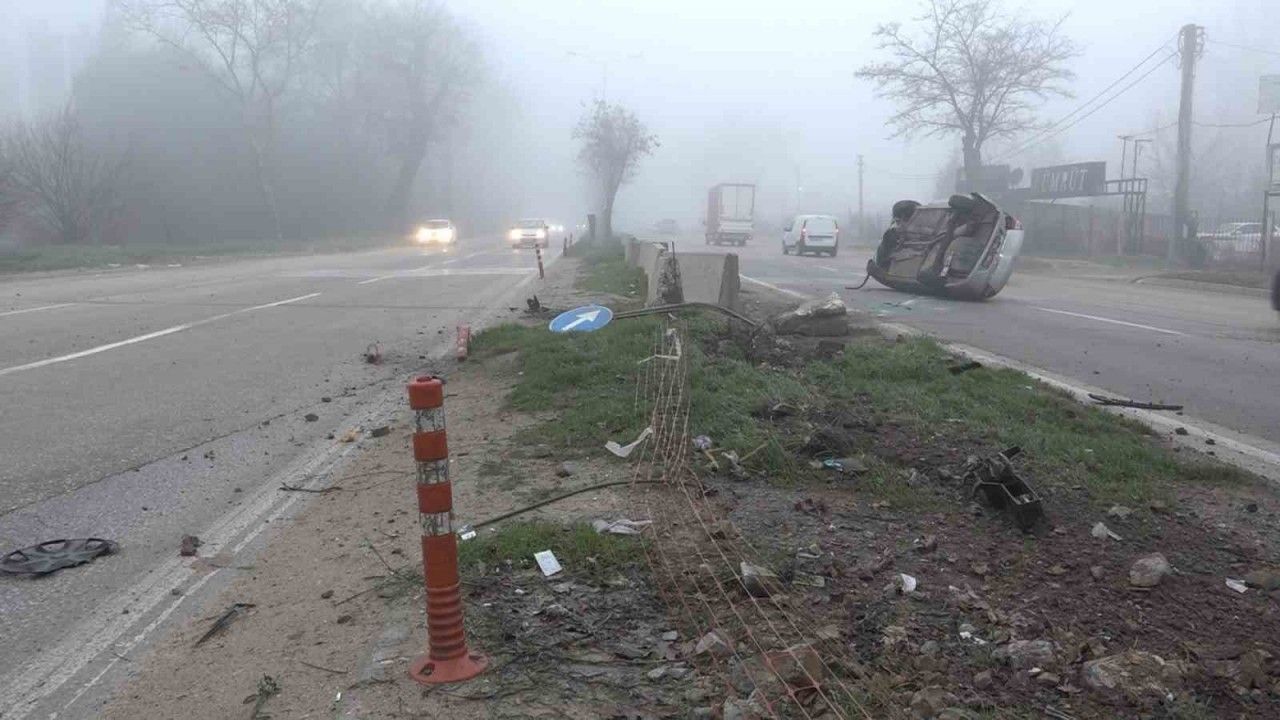 Kaza, sabah saat 07.00 sıralarında merkez Osmangazi ilçesi Geçit Mahallesi’nde meydana geldi. Mudanya istikametine ilerleyen 16 NMR 20 plakalı otomobilin sürücüsü, sis sebebiyle görüş mesafesini kaybetti. Mudanya istikametinde virajlı yolu fark etmeyen sürücü, refüjdeki beton bariyere çarptı. Çarpmanın etkisiyle kontrolden çıkan otomobil, yolun ortasına yan yattı.