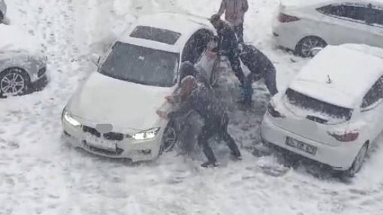 İstanbul Sultangazi’de araçlar kara gömüldü. Vatandaşlar karda hareket edemeyen bir otomobili elbirliğiyle kurtarmaya çalıştı. O anlar cep telefonu kamerasına yansıdı.