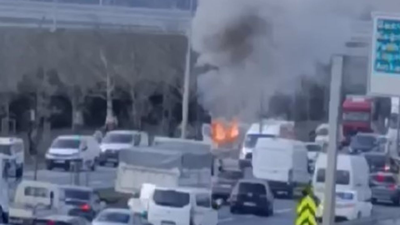 Alevlerin yükseldiği kamyonetteki yangın ise çevredeki vatandaşlar tarafından cep telefonu kamerası ile kaydedildi.
