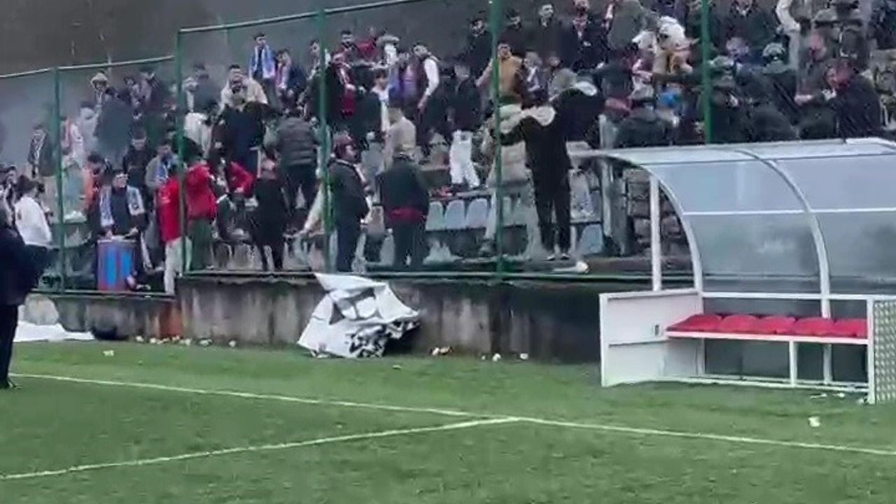 Karabük Amatör Lig’de oynanan Yortanspor-Eskipazar Belediyespor maçında deplasman takım taraftarları kırdıkları koltukları sahaya fırlattı.