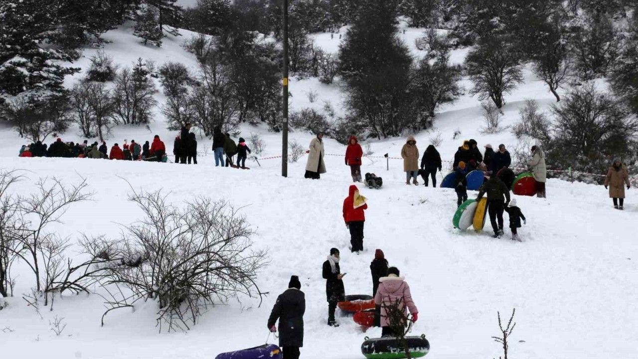 Bolu’nun doğa harikası Abant Gölü Mili Parkı’nda kar yağışı aralıklarla etkili oluyor. Kar kalınlığı yer yer 20 santimetreye kadar ulaşırken, hafta sonu karın tadını çıkararak değerlendirmek isteyenler milli parkta yoğunluk oluşturdu. Abant Gölü Milli Parkı’nın yakınlarındaki bulunan Örencik Yaylası’nda köylüler tarafından yaklaşık 200 metre uzunluğunda kayak pisti oluşturdu. Tatilcilerin de ilgi odağı olan pistte, aileler kızak, şambrel ve poşetlerle kayarak eğlendi. Kar manzarası eşliğinde göl çevresinde yürüyüş de yapan tatilciler, bol bol fotoğraf çektirerek, kar topu oynamayı da ihmal etmedi.