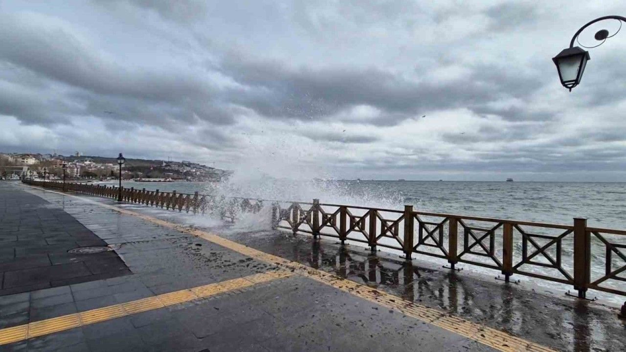 Marmara Denizi’nde etkili olan şiddetli Poyraz, Tekirdağ kıyılarında dalgaların yükselmesine ve deniz ulaşımının aksamasına neden oldu.