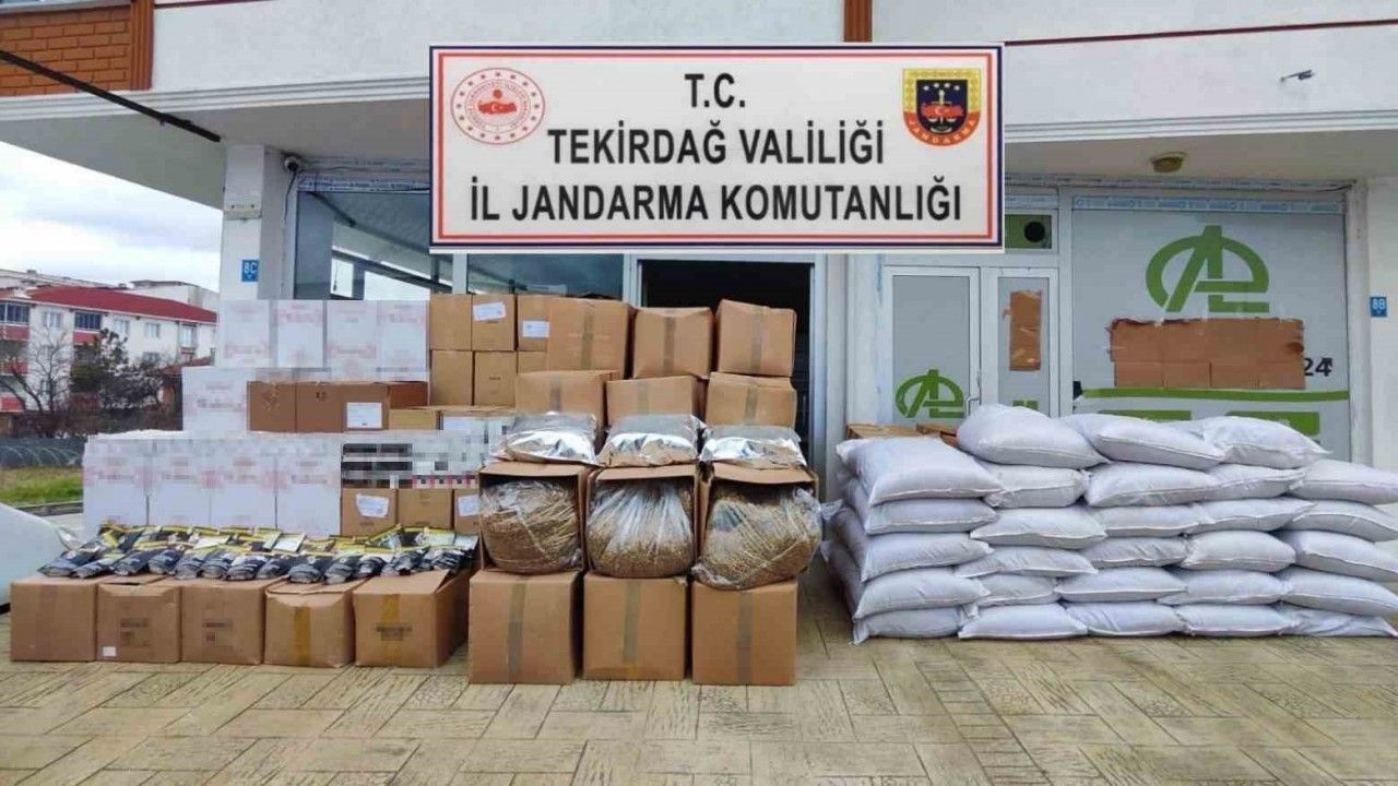 Tekirdağ İl Jandarma Komutanlığı ekiplerince kaçak tütün ve makaron ticaretine yönelik düzenlenen operasyonlarda binlerce malzeme ele geçirildi.