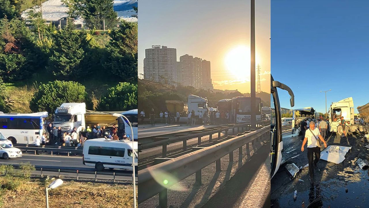 Edinilen bilgilere göre, olay, TEM Otoyolu Edirne istikameti Halkalı mevkiinde yaşandı. Hafriyat kamyonu ve 2 otobüsün karıştığı kazada adeta can pazarı yaşandı. Kazada 1 kişi hayatını kaybederken, 16 kişi yaralandı.