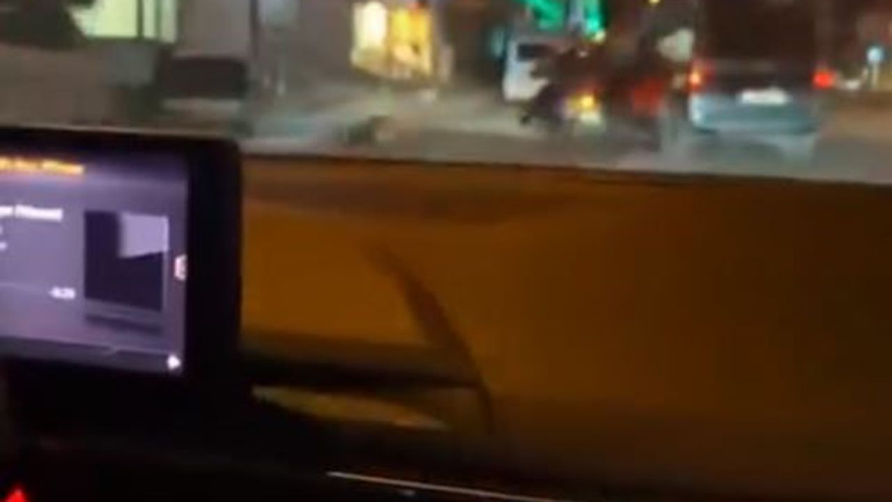 İstanbul Arnavutköy’de cadde üzerinde ilerleyen motorlu kuryeye ters yöne dönmeye çalışan hafif ticari araç çarptı. Kaza anı cep telefonu kamerasıyla böyle görüntülendi.