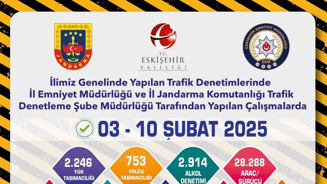Eskişehir’de polis ve jandarma ekiplerince gerçekleştirilen trafik denetimlerinde 28 binden fazla araç sürücüsü kontrol edilirken, 8 bin 223 ayrı trafik cezası kesildi.