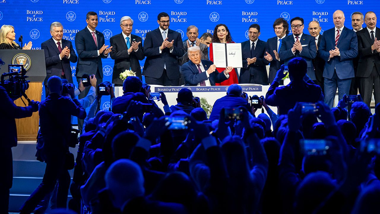 Gazze Şeridi'ndeki ateşkes için oluşturulan fakat ABD Başkanı Trump'ın ifadelerine göre Birleşmiş Milletler (BM) ile birlikte çalışarak küresel ölçekte geniş bir rol üstlenecek olan Barış Kurulu'nun kuruluş sözleşmesi imza töreni İsviçre Alpleri'ndeki Davos kasabasında gerçekleştirildi. ABD Başkanı Trump, başkanlığını üstlendiği Barış Kurulu'nun kuruluş sözleşmesine 19 katılımcı ülkenin temsilcileriyle birlikte imza attı. İmza töreni için masaya ilk davet edilen liderler, Donald Trump ile birlikte Bahreyn ve Fas liderleri oldu. İlk imzaların ardından "Barış Kurulu, artık resmen uluslararası bir örgüttür" ifadelerini kullanan Beyaz Saray Sözcüsü Karoline Leavitt, Barış Kurulu'nun kurucu üyeleri olarak diğer ülkelerin temsilcilerini de sırayla sözleşmeyi imzalamaya davet etti.
