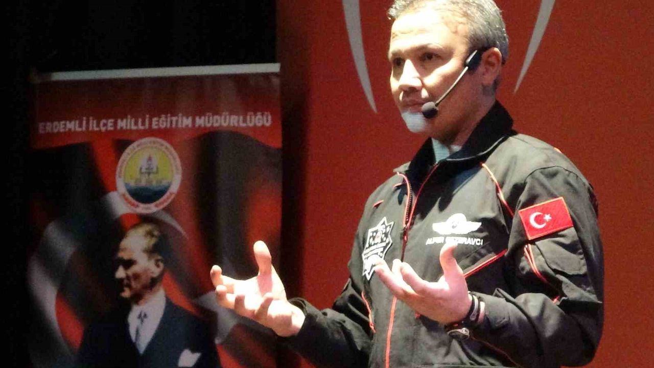 Mersin Erdemli’de öğrencilerle bir araya gelen Türkiye’nin ilk astronotu Alper Gezeravcı,"Türkiye’de çok güzel işler başarmış bu memleketin kalender evlatları var. Topluluk içinde popüler olduğunu iddia eden yanlış figürlerin peşinden gitmek yerine doğru örneklerin peşinden yürüdüğünüz zaman içinizdeki kaygıyı da bertaraf etme imkanı bulacaksınız. Yanlış yerlere odaklanmaktan vazgeçtiğiniz zaman potansiyeliniz karşılık bulur" dedi.
