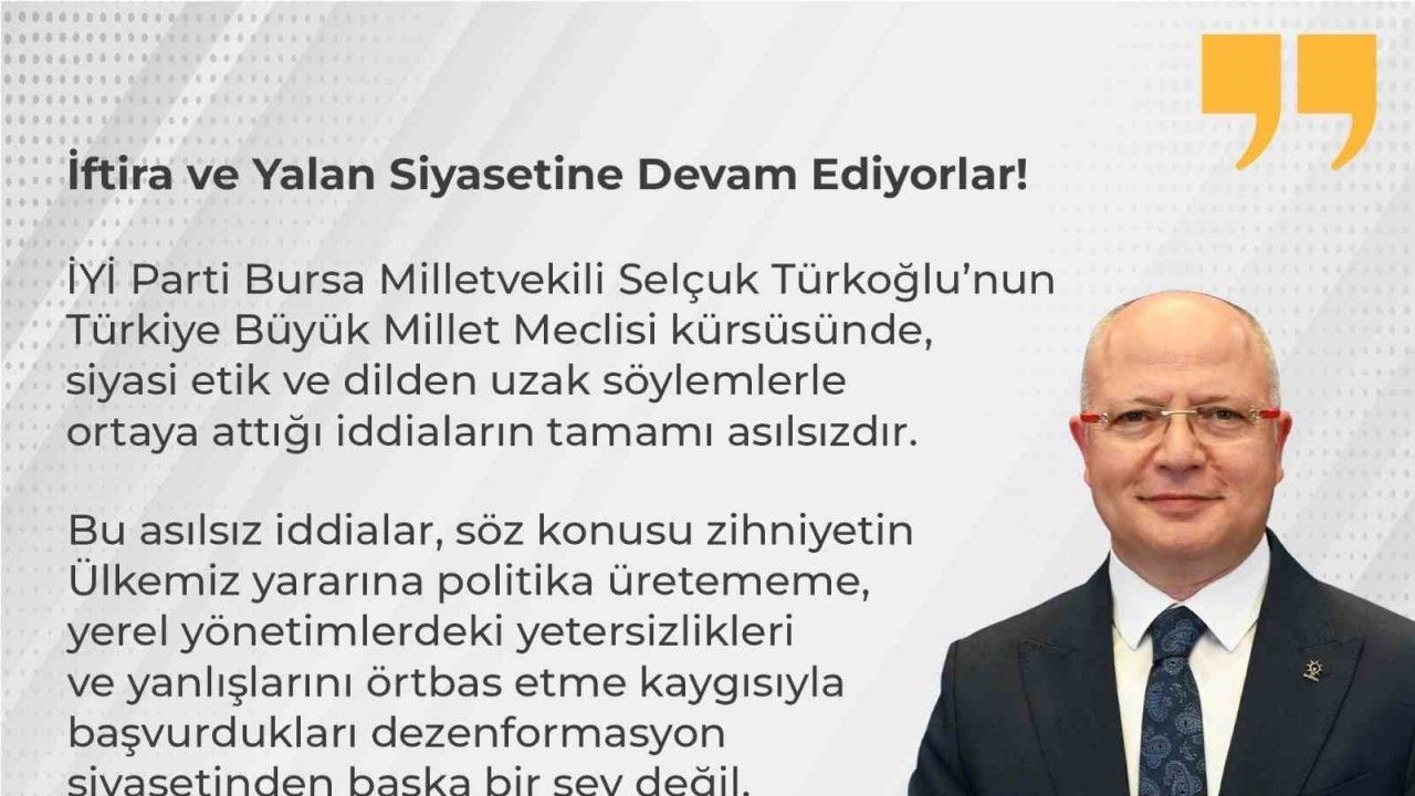 Bu iddialara cevap veren AK Parti Bursa İl Başkanı Davut Gürkan Türkoğlu’nun iddialarının gerçeği yansıtmadığını ve tamamının asılsız olduğunu söyledi.