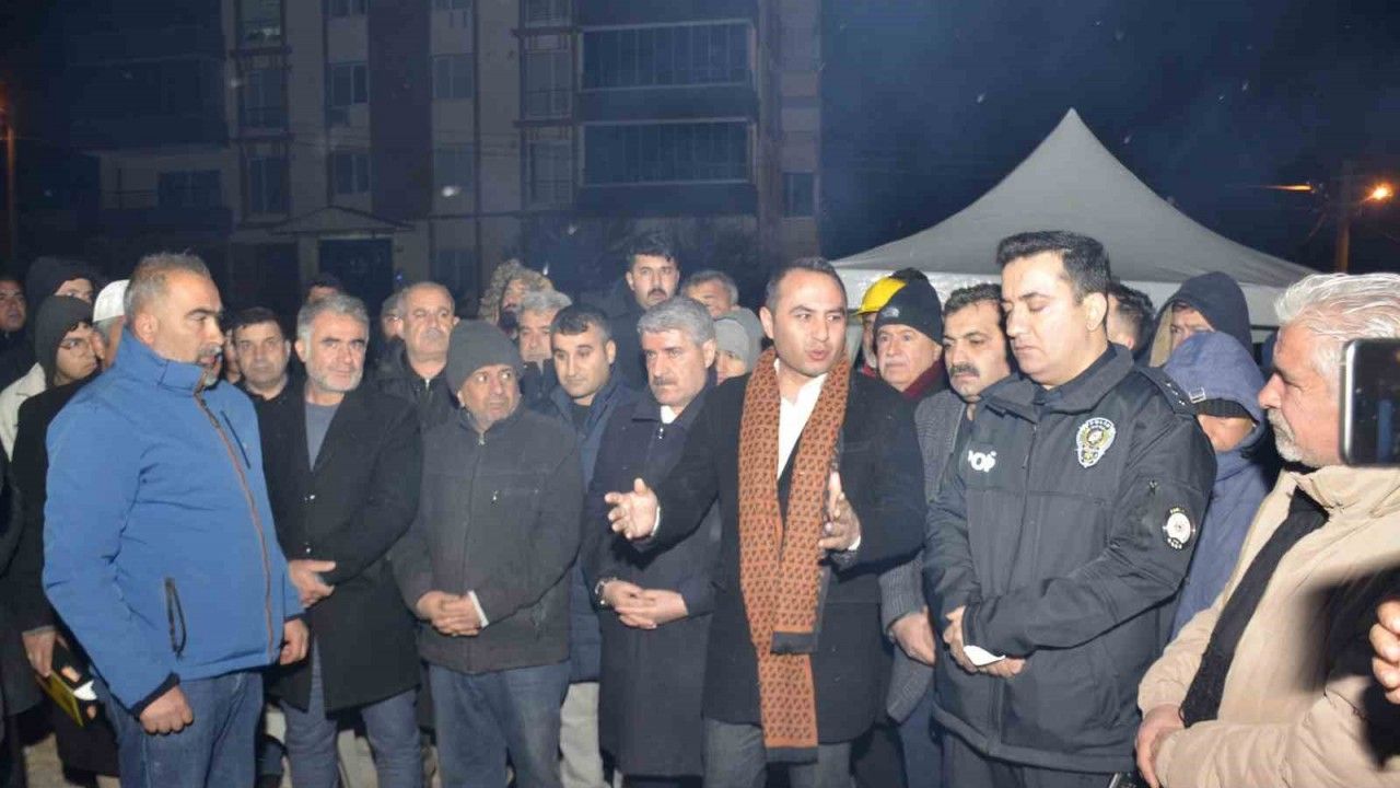 Besni Üzümkent Sitesi’nin yıkılan binalarında yakınlarını kaybeden vatandaşlar, anma töreni düzenledi.