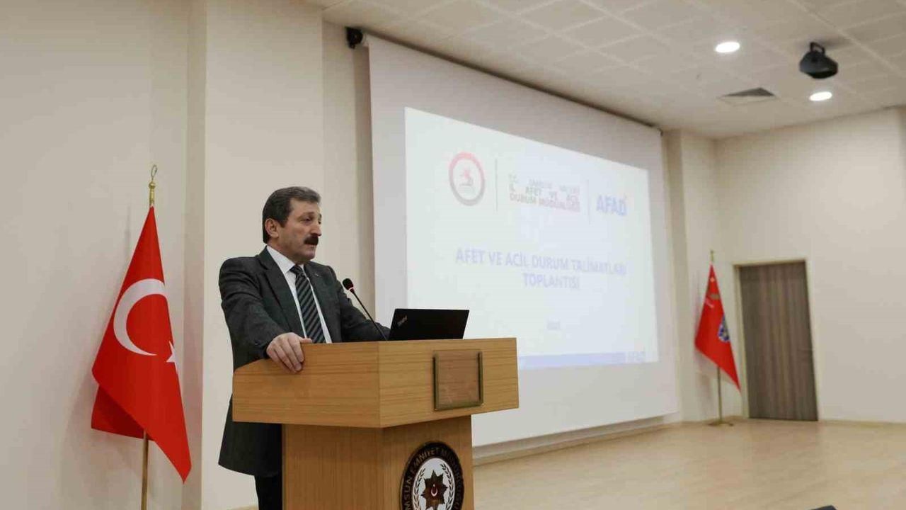 Türkiye Afet Müdahale Planı (TAMP) kapsamında gerçekleştirilen Afet ve Acil Durum Talimatları Toplantısı; Samsun Valisi Orhan Tavlı’nın başkanlığında, adalet teşkilatı, üniversiteler, baro ve büyükşehir belediyesi yetkilileri, vali yardımcıları, ilçe kaymakamları, ilçe belediye başkanları, kamu kurum ve kuruluşlarının müdürleri ve sivil toplum kuruluşu temsilcilerinin katılımıyla gerçekleştirildi. Vali Orhan Tavlı, toplantıda yaptığı konuşmada şu ifadelere yer verdi: