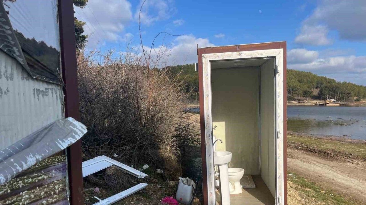 Denizli’de yer alan kuş cenneti Yayla Göl’ünde vatandaşların ihtiyaçlarını karşılamak amacıyla konulan mobil tuvaletlere kimliği belirsiz kişiler tarafından zarar verildi.