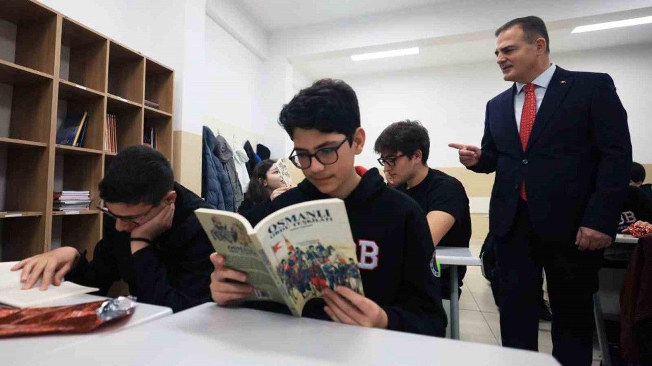 Türkiye Odalar ve Borsalar Birliği Fen Lisesi 9/C sınıfında "Bir Kitap, Bir İnsan" konulu derse katılan Vali Dr. İdris Akbıyık, öğrencilere kitap okumanın öneminden bahsetti.