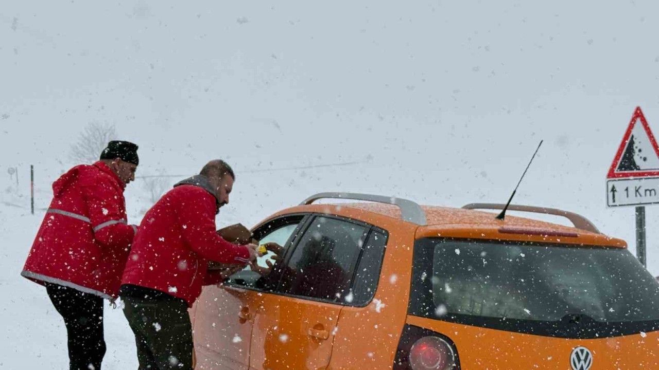 Muş-Kulp-Diyarbakır kara yolunda yoğun kar yağışından dolayı mahsur kalan vatandaşların imdadına Kızılay Muş Şube Başkanlığı ekipleri yetişti.