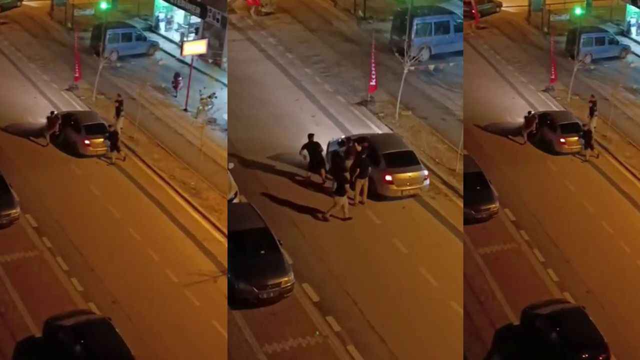 Olay, Nilüfer ilçesi Akçalar Mahallesi’nde meydana geldi. Edinilen bilgiye göre, trafikte henüz bilinmeyen bir nedenle bir otomobil sürücüsü ile tartışan iki kişi, aracı durdurup kavgaya tutuştu. Yumruk ve tekmelerin havada uçuştuğu kavgayı gören çevredeki vatandaşlar, tarafları ayırmak için büyük çaba gösterdi. O anlar, cep telefonu kamerasıyla kaydedildi. Görüntülerde, iki kişinin birbirine defalarca yumruk attığı, çevredekilerin ise güçlükle müdahale ettiği anlar yer aldı.