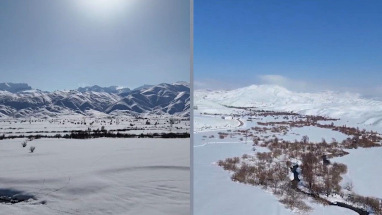 İlçenin dümdüz ovasının içinde kıvrılarak uzanan menderesler, etrafını saran karlı dağlarla görsel şölen sunuyor. Yaz aylarında etrafını saran sarı çiçeklerle renklenen menderesler, kış aylarında ise kar altındaki manzarasıyla kartpostallık görüntüler sunarken hemen etrafını saran dağlar ise hayran bırakıyor. Mendereslerin karlı dağlarla bütünleşmesini dron ile görüntüleyen doğasever Hakan Zanyar Aykut, doğanın güzelliklerini gözler önüne serdi.