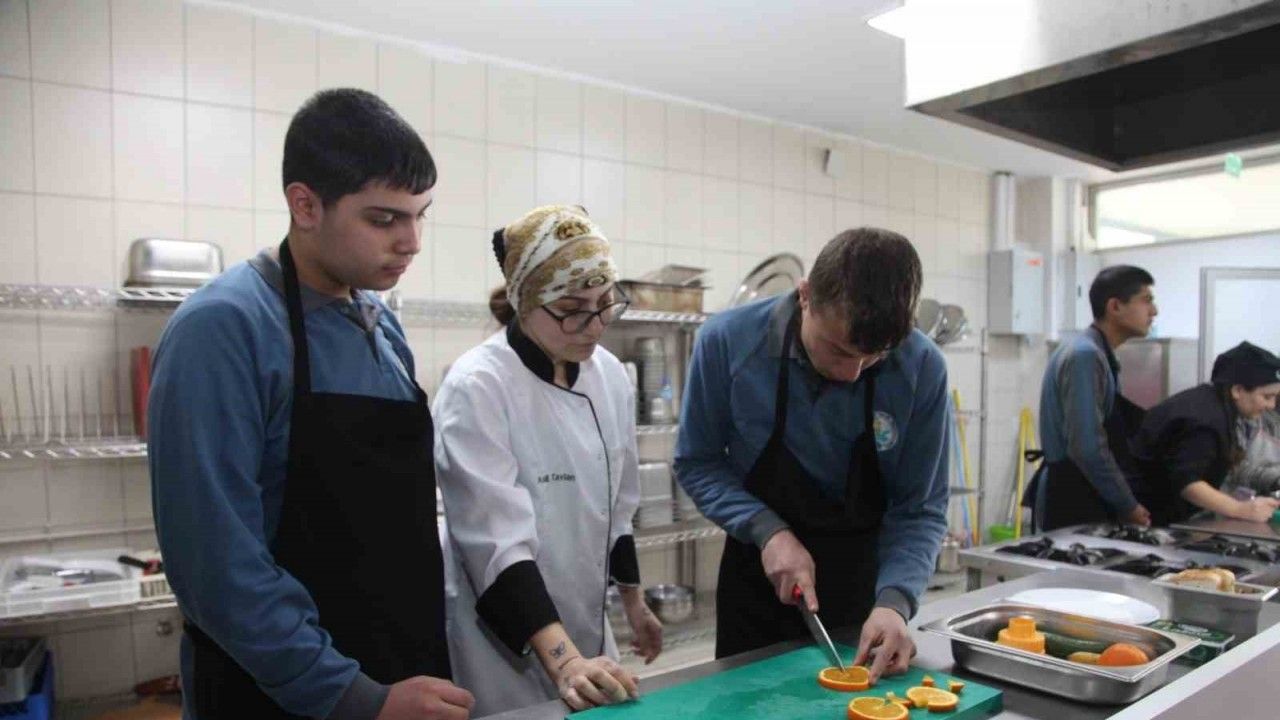 Ahlat Kaymakamlığı Proje Birimi tarafından Engellilerle El Ele Dayanışma ve Yardımlaşma Derneği adına hazırlanan proje, Ahlat Kaymakamlığı ve Bitlis Eren Üniversitesi (BEÜ) Kanık Uygulamalı Bilimler Fakültesi Gastronomi Bölümü işbirliğiyle yürütülüyor. İçişleri Bakanlığı Sivil Toplumla İlişkiler Genel Müdürlüğü tarafından desteklenen proje kapsamında engelli bireyler, gastronomi öğrencileriyle bir araya gelerek mutfakta pratik yaptı. Şef önlüklerini giyen özel bireyler, kahvaltı malzemelerinden oluşan sunumlar hazırlayarak keyifli anlar yaşadı.