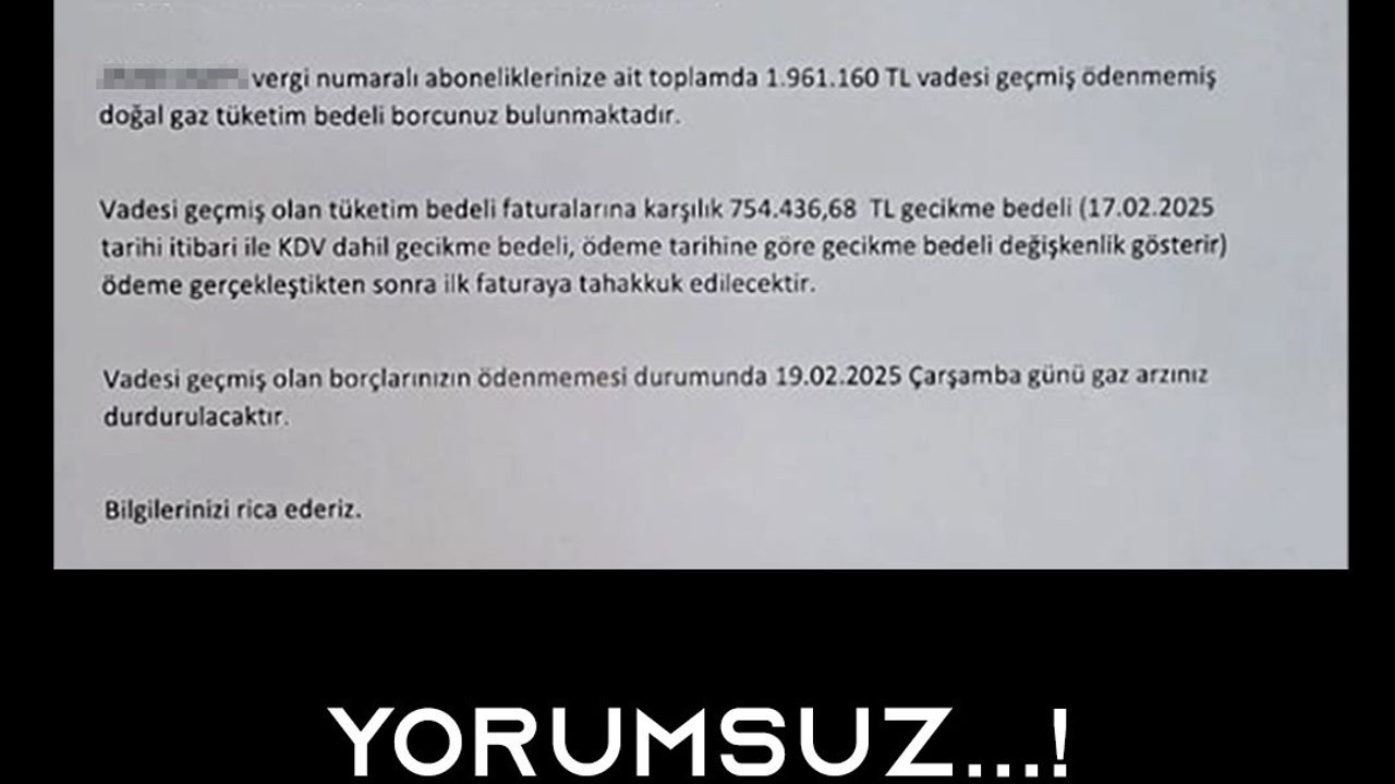 TFF Nesine 3. Lig’de mücadele eden Denizlispor sosyal medya hesabında doğalgaz dağıtım şirketi Enerya’ya tepki gösterdi. Zor günler geçiren yeşil siyahlı ekip ‘Yorumsuz’ olarak paylaştığı hatırlatma mesajında Enerya’ya sitem etti. Denizlispor’un paylaştığı Enerya tarafından gönderilen hatırlatma ve gaz kesme uyarısında, "Aboneliklerinize ait toplamda 1 milyon 961 bin 160 TL vadesi geçmiş ödenmemiş doğalgaz tüketim bedeli borcunuz bulunmaktadır. Vadesi geçmiş olan tüketim bedeli faturalarına karşılık 754 bin 436 lira 68 kuruş gecikme bedeli (17.02.2025 tarihi itibari ile KDV dahil gecikme bedeli, ödeme tarihine göre gecikme bedeli değişkenlik gösterir)ödeme gerçekleştikten sonra ilk faturaya tahakkuk edilecektir. Vadesi geçmiş olan borçlarınızın ödenmemesi durumunda 19.02.2025 Çarşamba günü gaz arzınız durdurulacaktır" ifadeleri yer aldı.